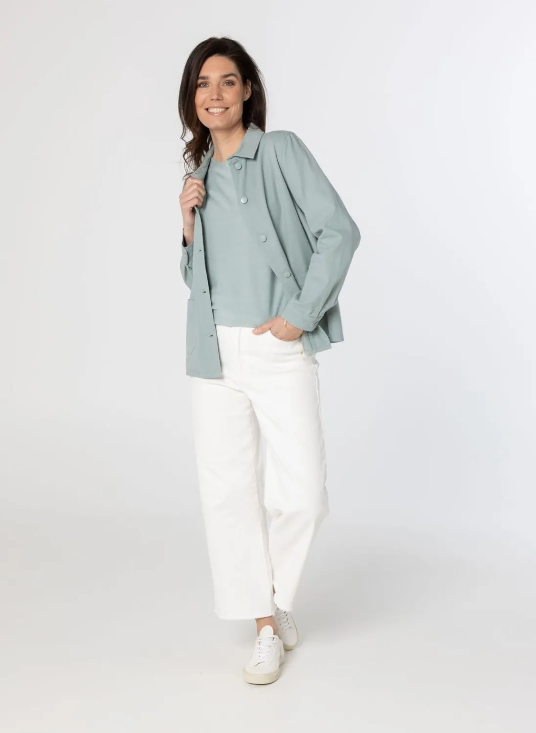 Dit Groene Katoenen Jacket Heeft Knopen Van Dezelfde Groene Kleur. De Lange Mouwen Eindigen In Een Knoopsluiting. De Voorzijde Van Het Jacket Is Onderaan Afgewerkt Met Open Zakken. Het Jacket Valt Los En Recht Op Het Lichaam.