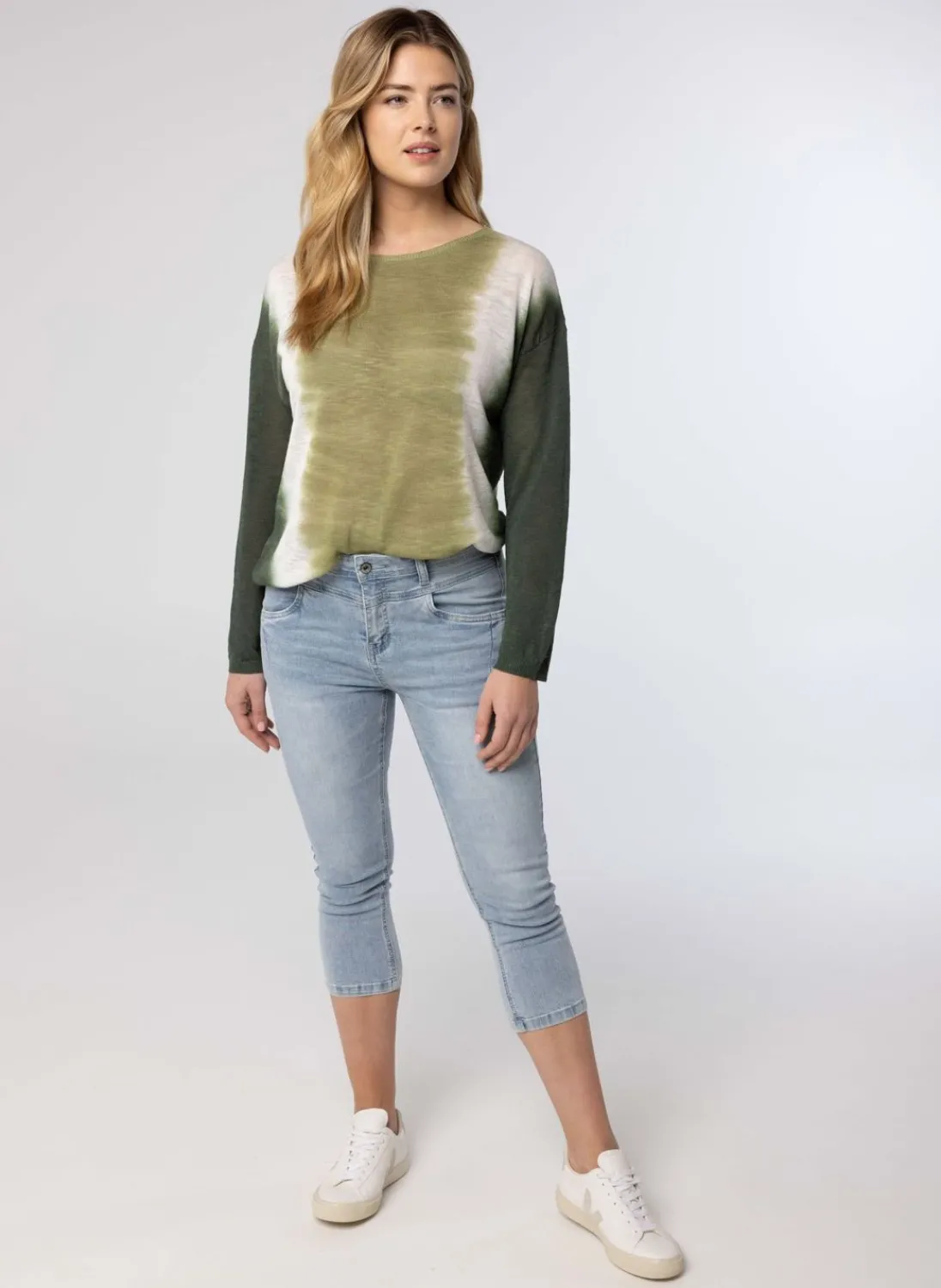 Fijngebreide Groene Trui Met Print En Lange Mouwen