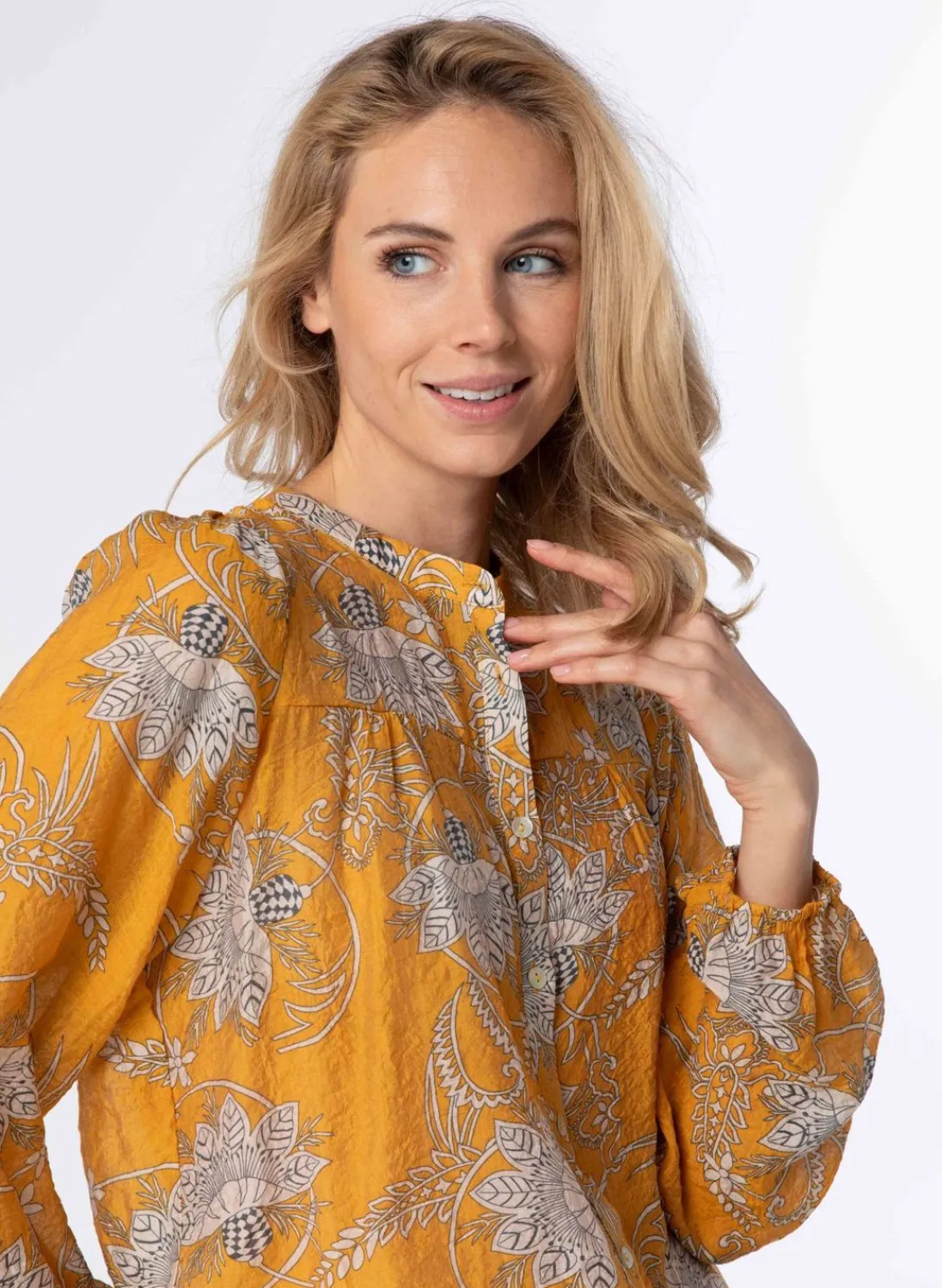 Een Lichte, Semi-Transparante Blouse Met Een Ronde Halslijn En Lange Pofmouwen Met Elastische Boorden. De Blouse Is Versierd Met Een Prachtige Bloemenprint, Wat Zorgt Voor Een Vleugje Elegantie. Het Is Afgewerkt Met Een Knoopsluiting, Waardoor Het Gemakkelijk Aan En Uit Te Trekken Is. Perfect Om Een Vrouwelijke En Stijlvolle Touch Aan Elke Outfit Toe Te Voegen.