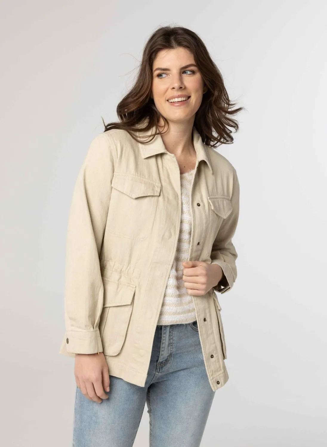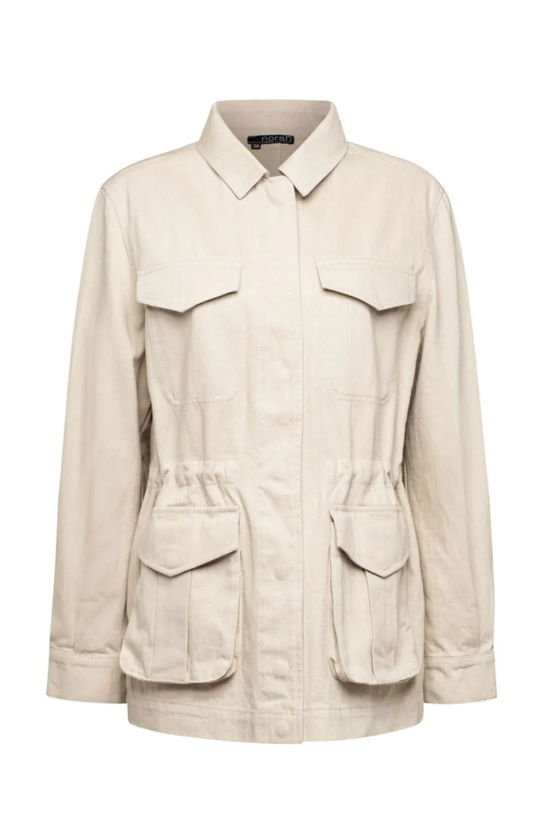 Dit Jacket In De Kleur Beige Is Gemaakt Van 100% Katoen, Heeft Een Klassieke Kraag En Vier Zakken Aan De Voorzijde. Het Jacket Is Middels Drukknopen Te Sluiten, Ook Aan De Uiteinden Van De Lange Mouwen. Middels Een Touw In De Binnenvoering Is Het Losvallende Jacket Te Tailleren. Het Jacket Valt Op Heuplengte.