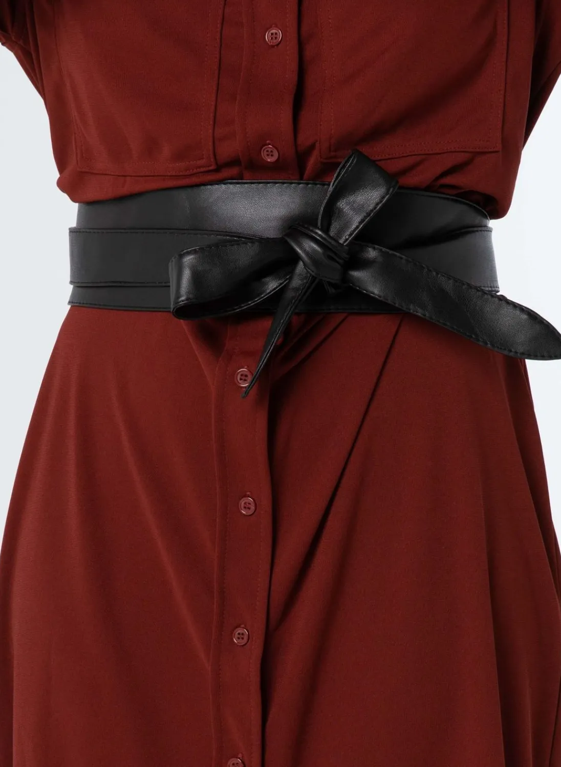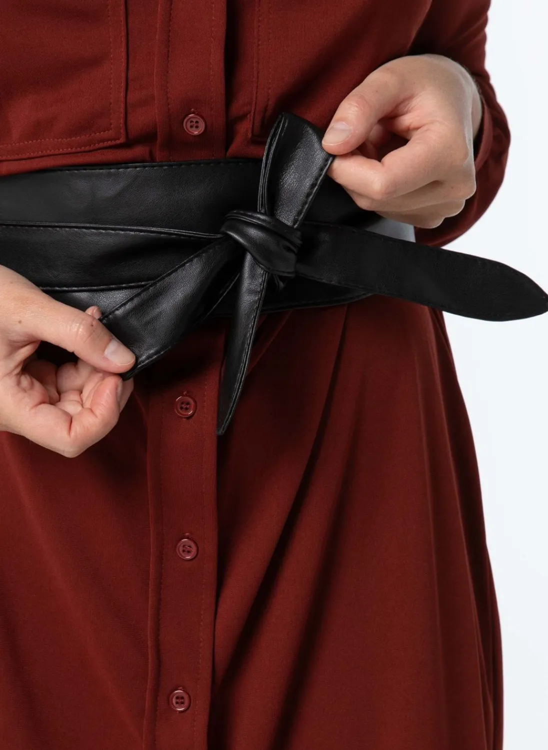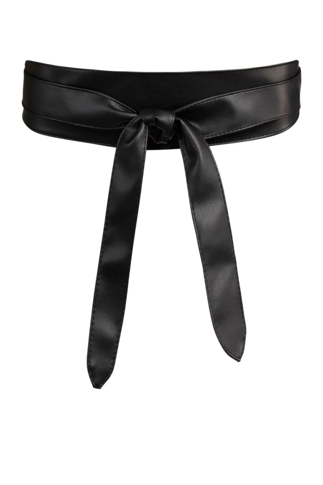 Zwarte Knoopriem Met Leer-Look. De Riem Is In Het Midden Breder En Loopt Smal Uit. Mooi Op Of Net Boven Je Taille Op Een (Lange)Jurk.