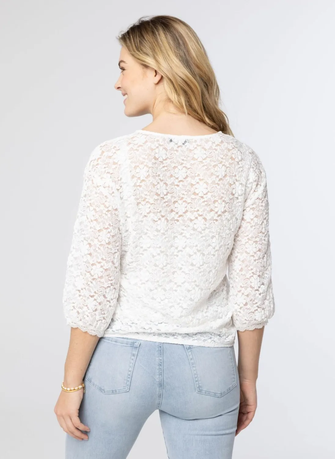 Semi Transparant Off White Shirt Met Halflange Mouwen En Elastieken Band.
