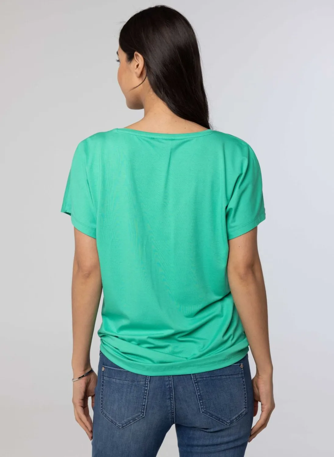 Shirt Met Stretch, Een V-Hals En Korte, Aangeknipte Mouwen.