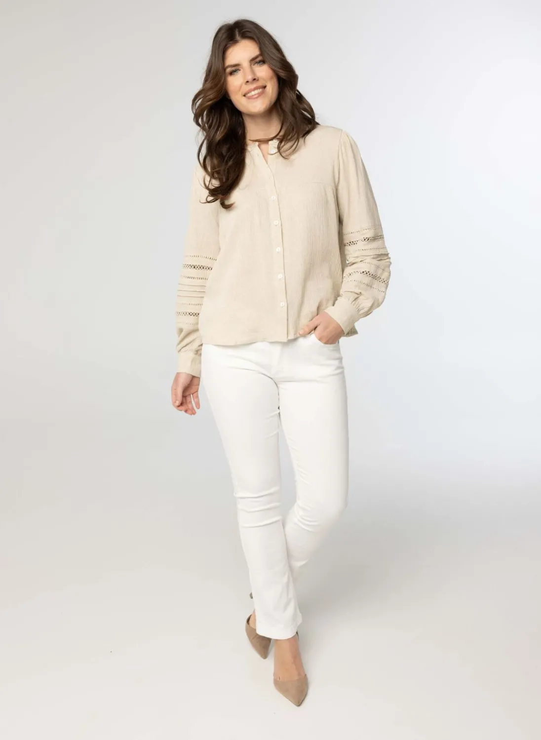 De Witte 5-Pocket Jeans Met Veel Stretch Heeft Een Lichte Flared Pijp En Normale Taillehoogte. Met Deze Broek Is Een Shop The Look Gemaakt, Bekijk De Look Hier.