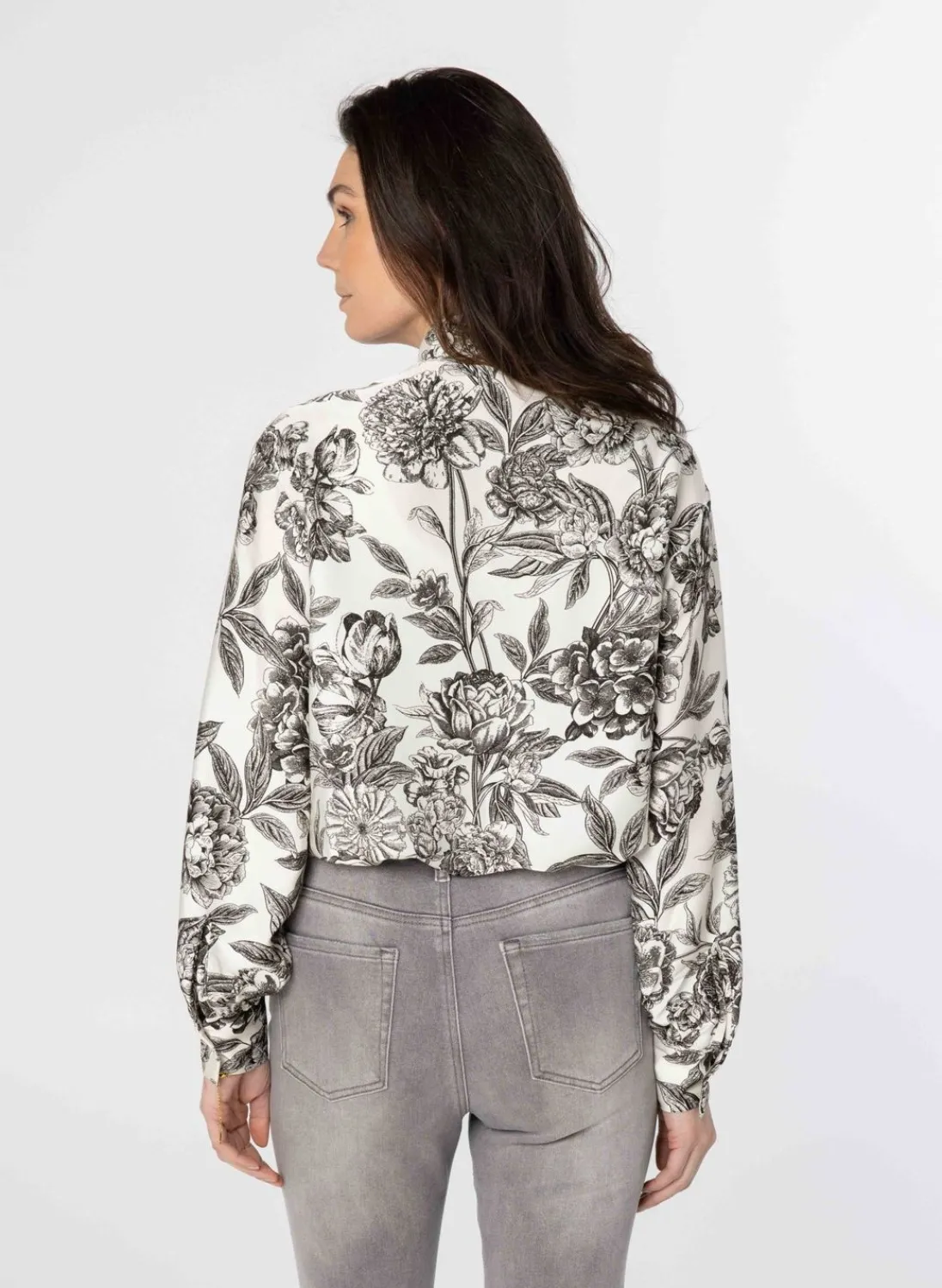 Een Ruime Polyester-Satijnen Blouse Met Een Elegante V-Hals. Vanuit De Hals Begint Het Stikdetail. De Blouse Heeft Lange Mouwen Met Een Split Manchet Met Een Knoopsluiting.