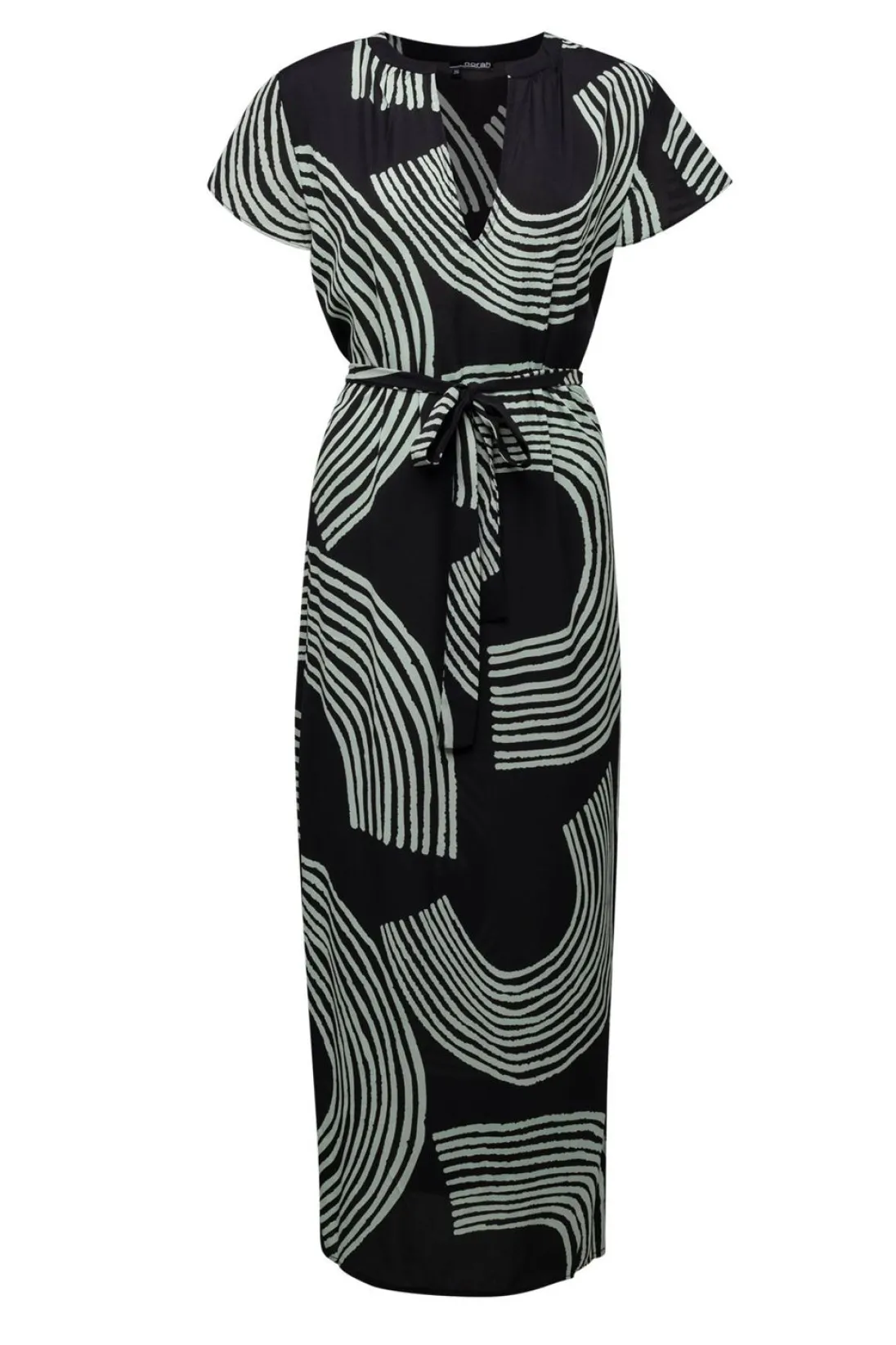 Deze Midi Dress Met Plooiende V-Halslijn En Ceintuur Heeft Korte Mouwen En Splits Aan De Zijkant. De Jurk Is Luchtig En Licht Doorschijnend. In De Print En Kleur Van Deze Jurk Hebben We Ook Een Shirt En Een Blouse.