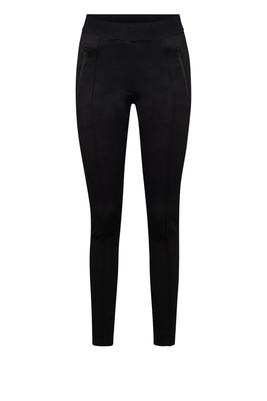 Een Skinny Fit Broek Gemaakt Van Soepel En Zacht Tricot Van Een Viscosemix Met Stretch, Voorzien Van Een Elastische Tailleband Voor Extra Comfort. Deze Stijlvolle Broek Laat Ook Een Gestikte Naaddetail Zien Aan De Voorkant, Twee Ritszakken En Twee Achterzakken Voor Een Trendy En Functioneel Ontwerp.