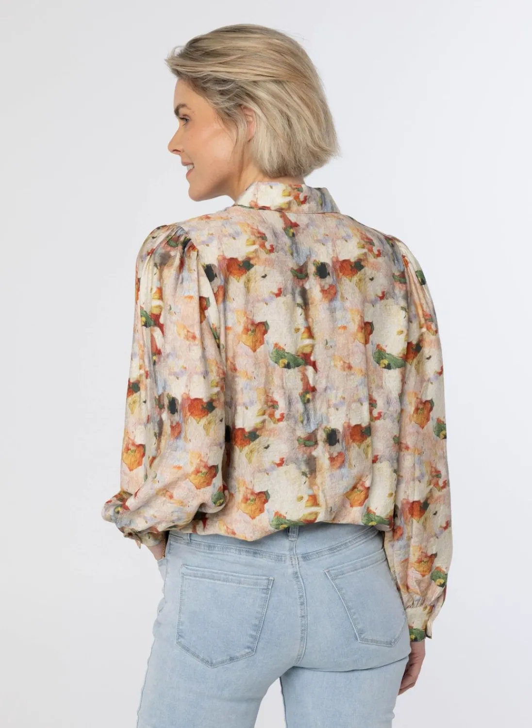 Deze Los Vallende Blouse Met Bloemenprint Heeft Een Klassieke Kraag, Knoopsluiting En Pofmouwen Met Een Manchet. In Dezelfde Print Hebben We Een Doorschijnende Blouse Zonder Knopen.