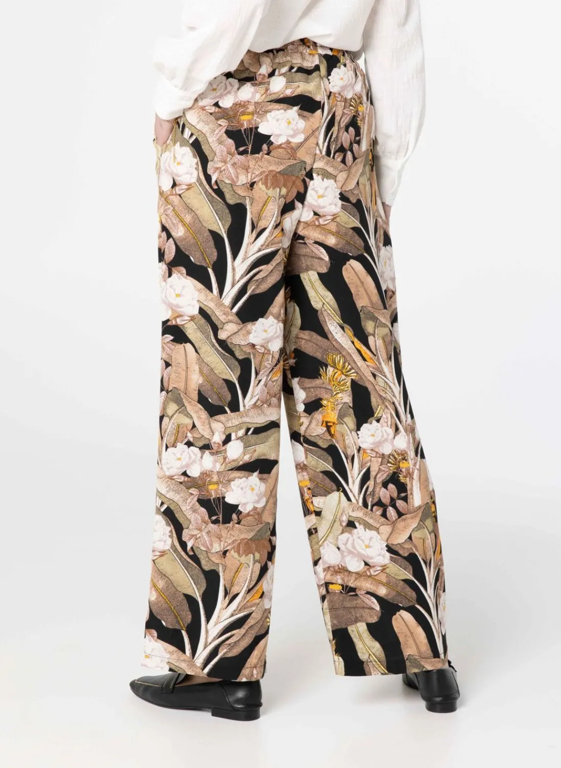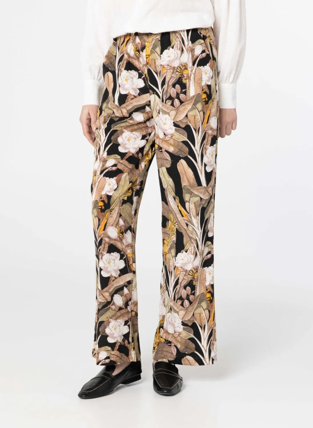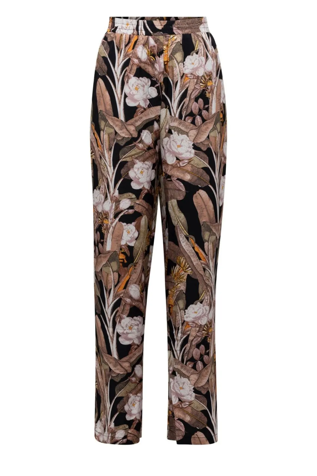 Een Meerkleurige Dun Geweven Broek Met Een Elastische Tailleband En Twee Steekzakken Aan Voorzijde. De Broek Heeft Een Wijde Pijp, Bloemenprint En Behoort Tot Een Co-Ord Set.