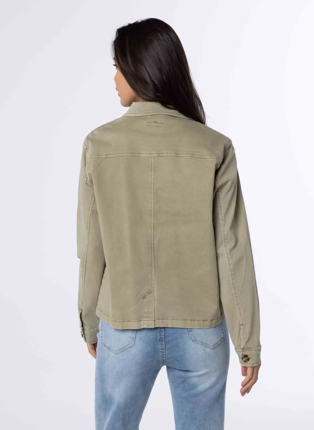 Een Stijlvolle Groene Jas Met Een Klassieke Kraag En Twee Niet-Sluitende Zakken. De Jas Is Afgewerkt Met Een Knoopsluiting En Heeft Lange Mouwen Met Een Splitmanchet En Knoopsluiting, Wat Een Vleugje Verfijning Aan Je Outfit Toevoegt. Perfect Voor Elke Gelegenheid, Deze Jas Is Een Must-Have Toevoeging Aan Je Garderobe.