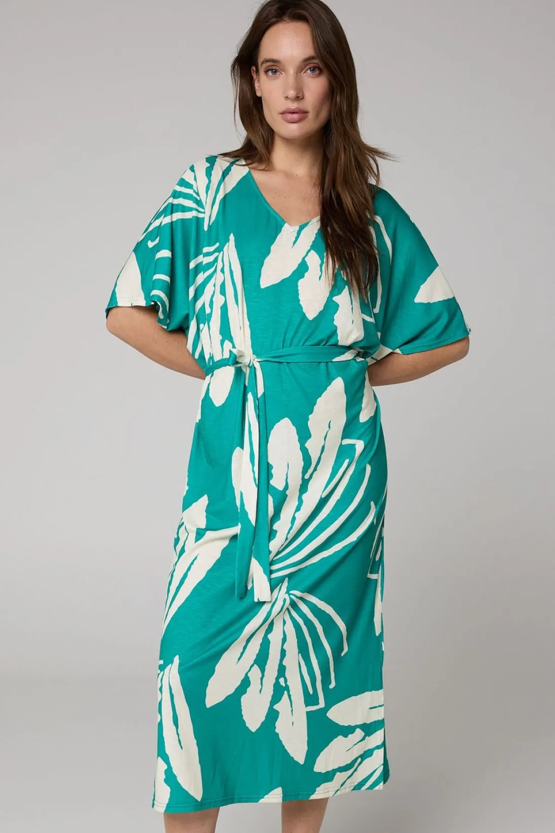 Midi Jurk Met Splits En Ceintuur.