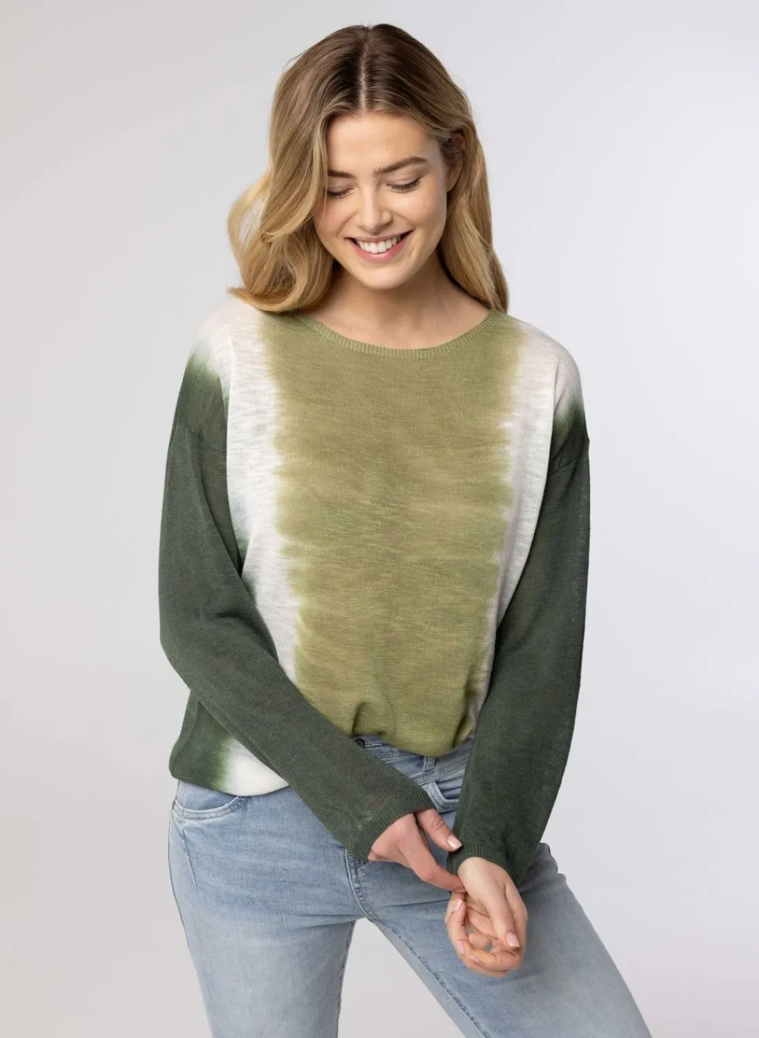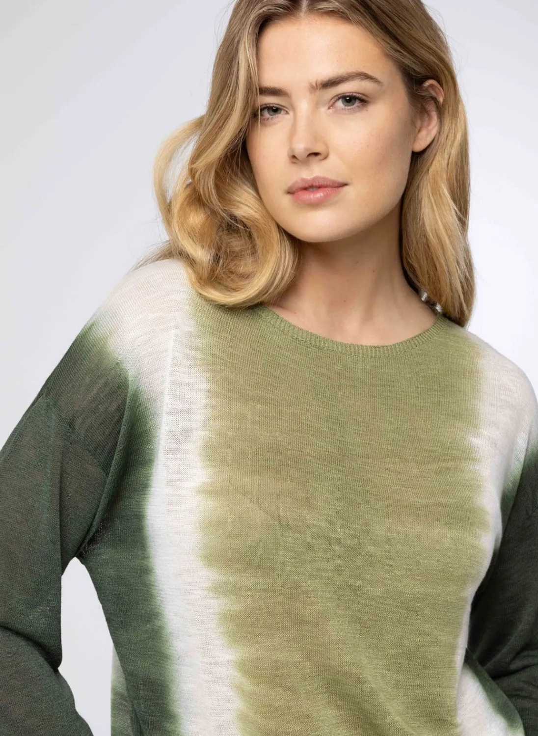 Fijngebreide Groene Trui Met Print En Lange Mouwen