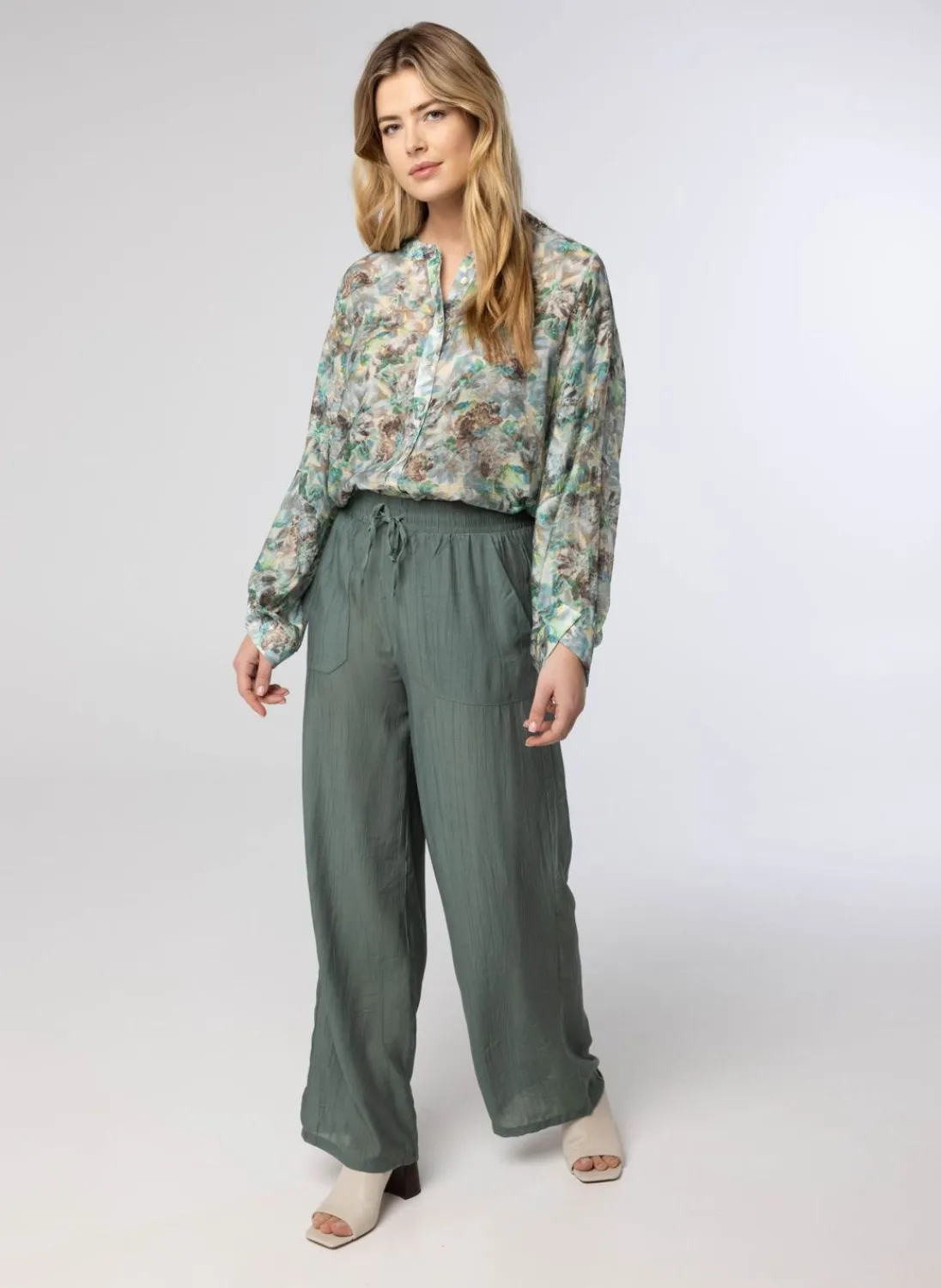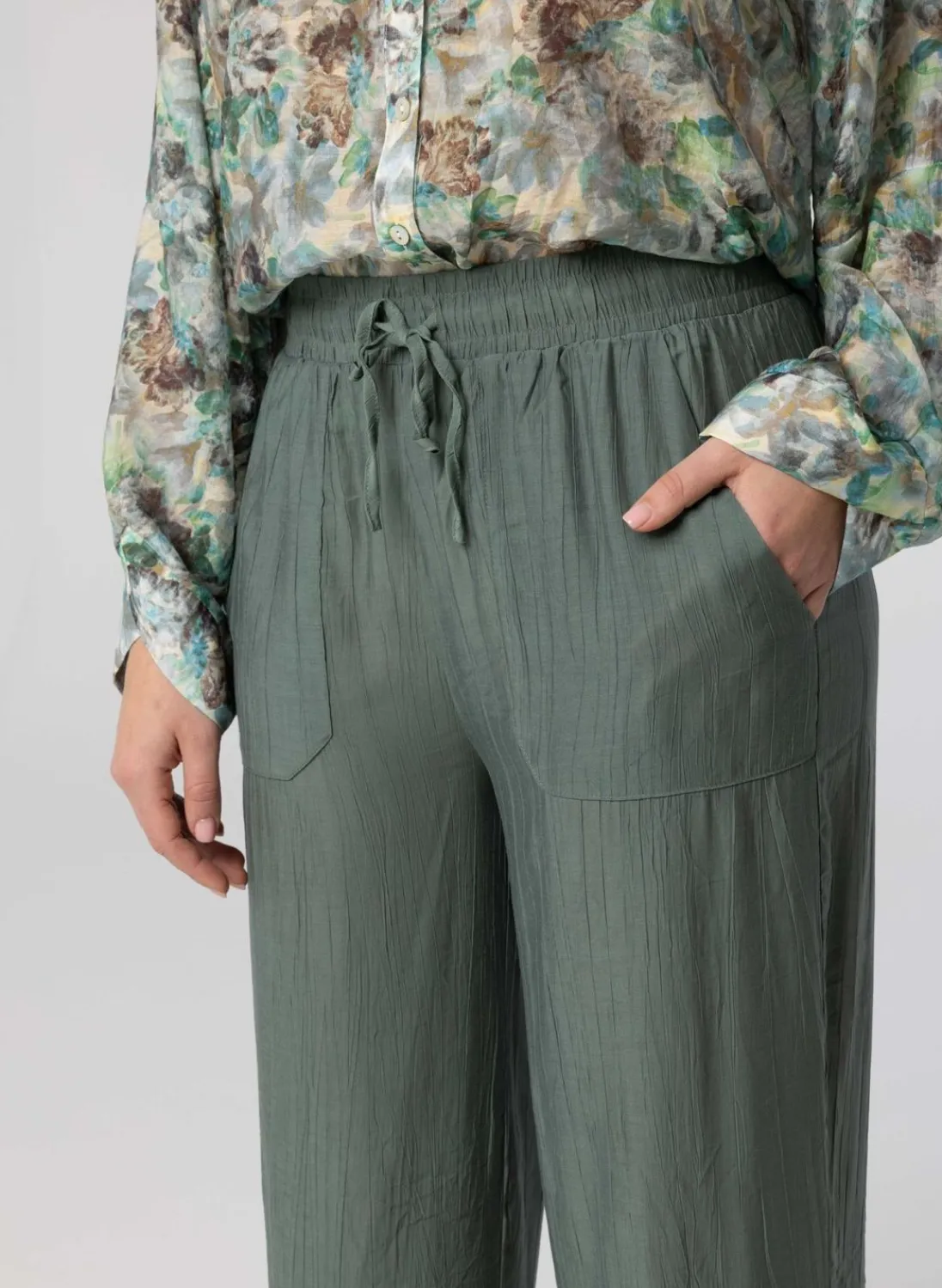 Voile High Waist Loose Fit Pantalon Met Structuur En Trekkoord.
