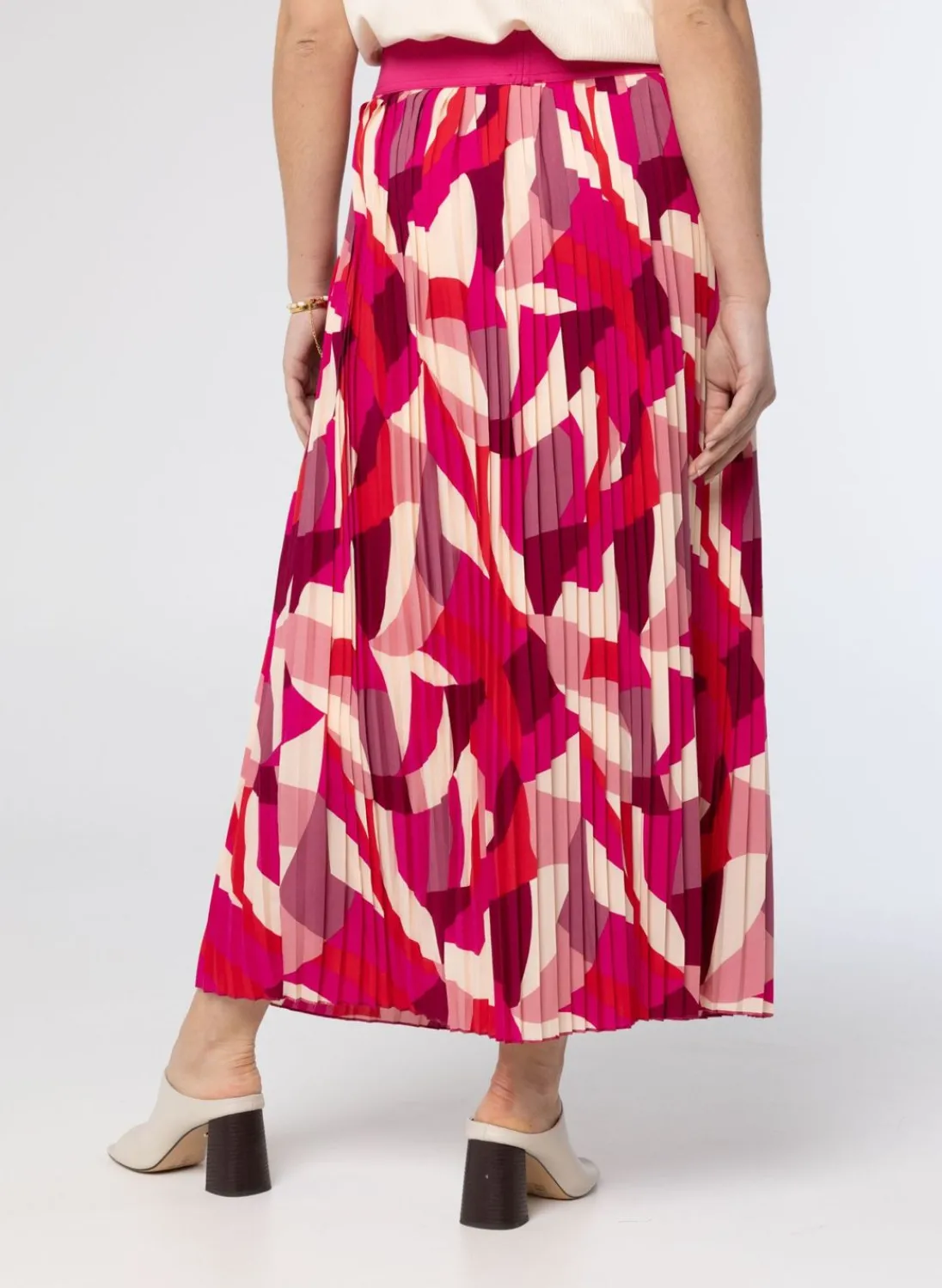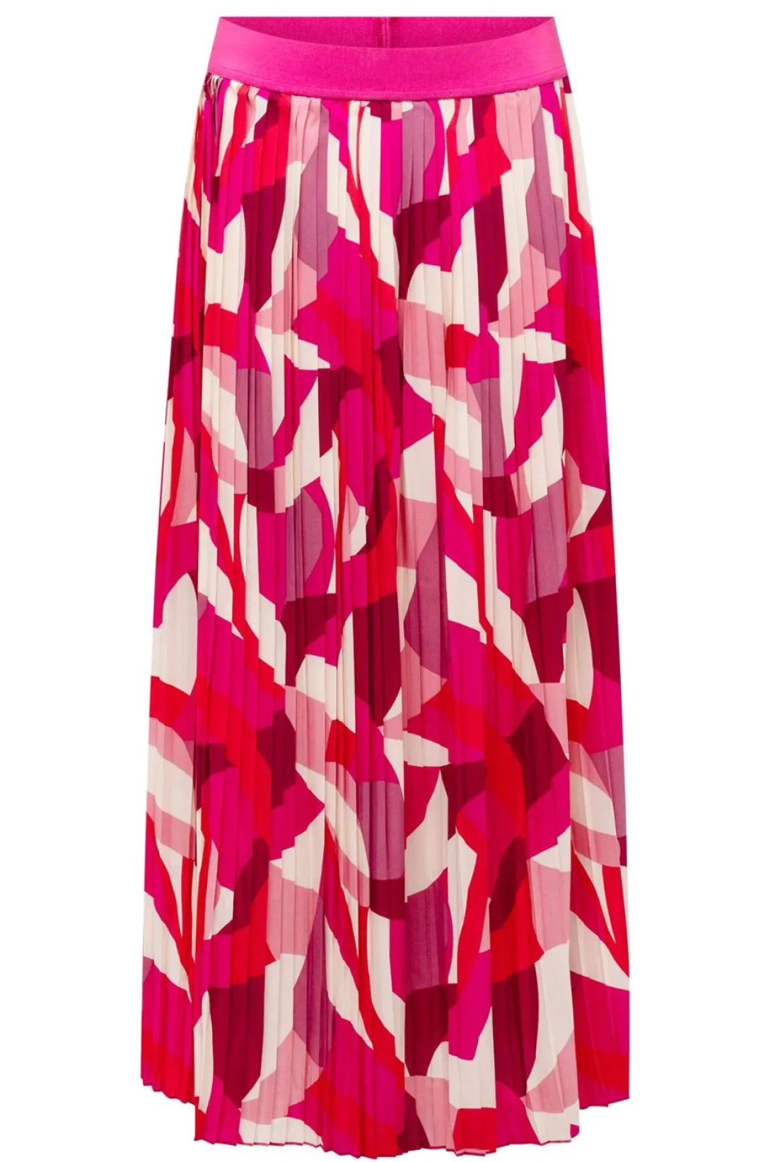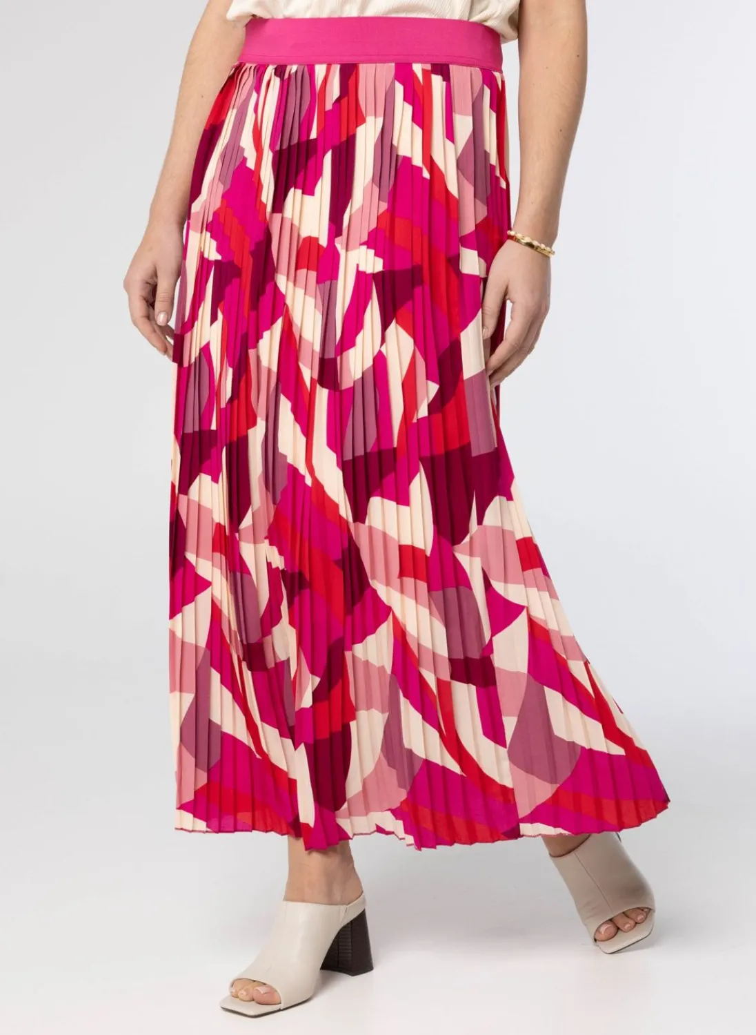 Deze Roze Plissé Rok Met Grafische Print Bestaat Uit De Kleuren Ecru, Paars, Bordeaux, Fuchsia, Roze En Rood. De Rok Heeft Een Onderrok En Een Elastieken Band Bovenaan. De Rok Valt Op Enkelhoogte En Is Onderdeel Van Een Co-Ord Set. Maak De Set Compleet Metdeze Blouse. Dol Op Deze Print? We Hebben Ook Een Tas In Deze Kleuren En Met Dezelfde Print.