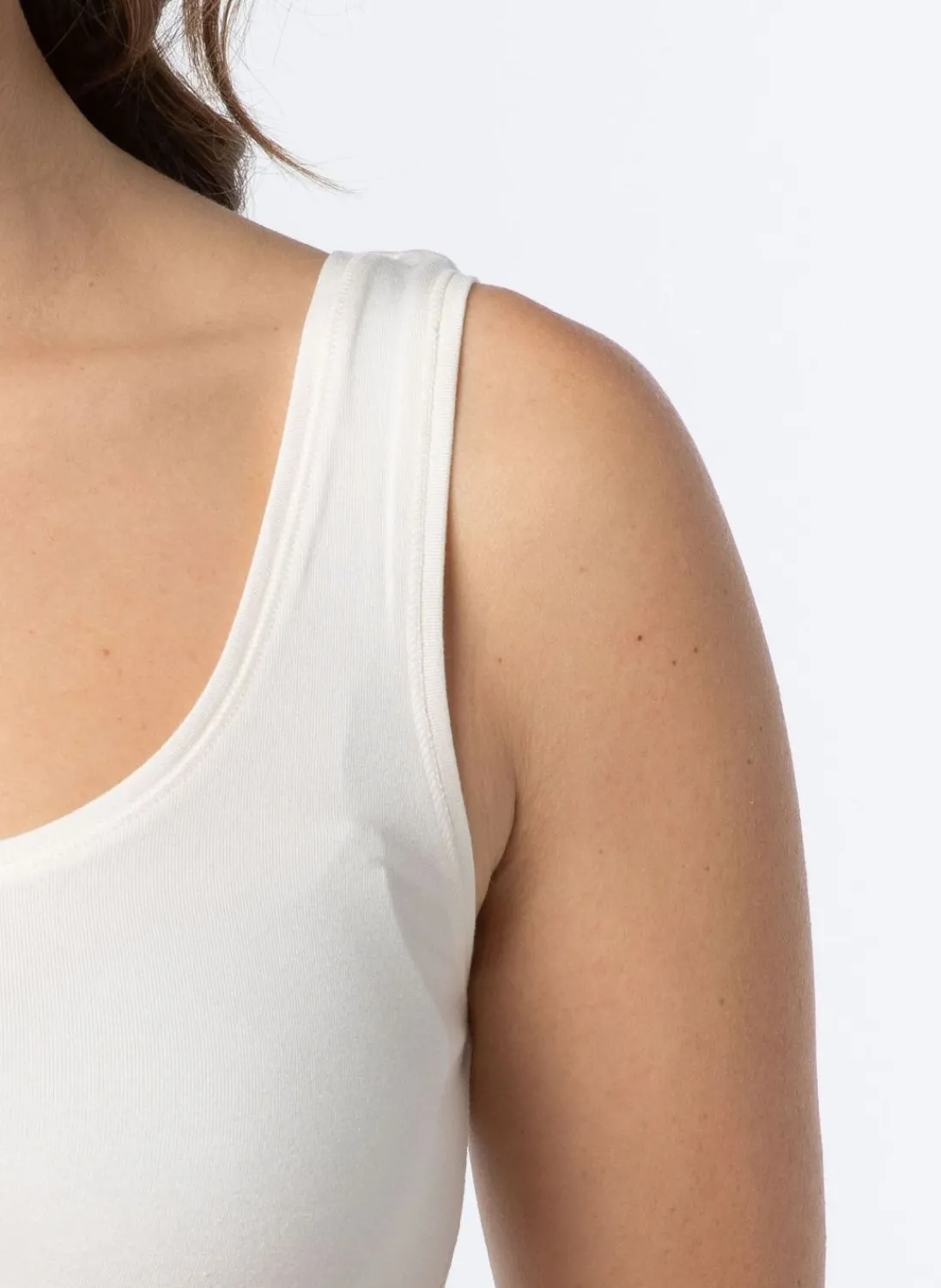 Maak Kennis Met De Marianne Basic Top In Gebroken Wit, Van Een Comfortabele Viscose Stof Met Stretch Die Moeiteloos Je Rondingen Omarmt. Dit Veelzijdige Kledingstuk Is Perfect Als Basis Voor Al Je Looks. Of Je ‘M Nu Feestelijk Of Casual Draagt, Deze Mouwloze Top Zal Zeker Een Favoriet Worden In Je Garderobe.