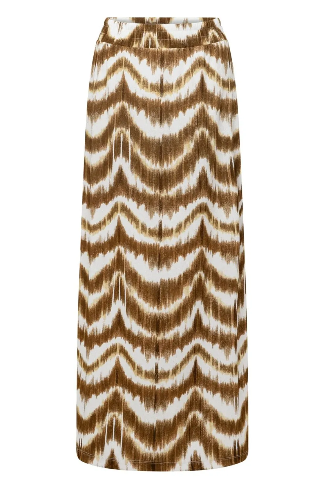 Deze Maxi Rok Met Grafische Print In De Kleuren Bruin En Wit Heeft Een Elastieken Band Op De Taille En Is Onderdeel Van Een Co-Ord Set. Maak De Set Af Met Het Shirt.